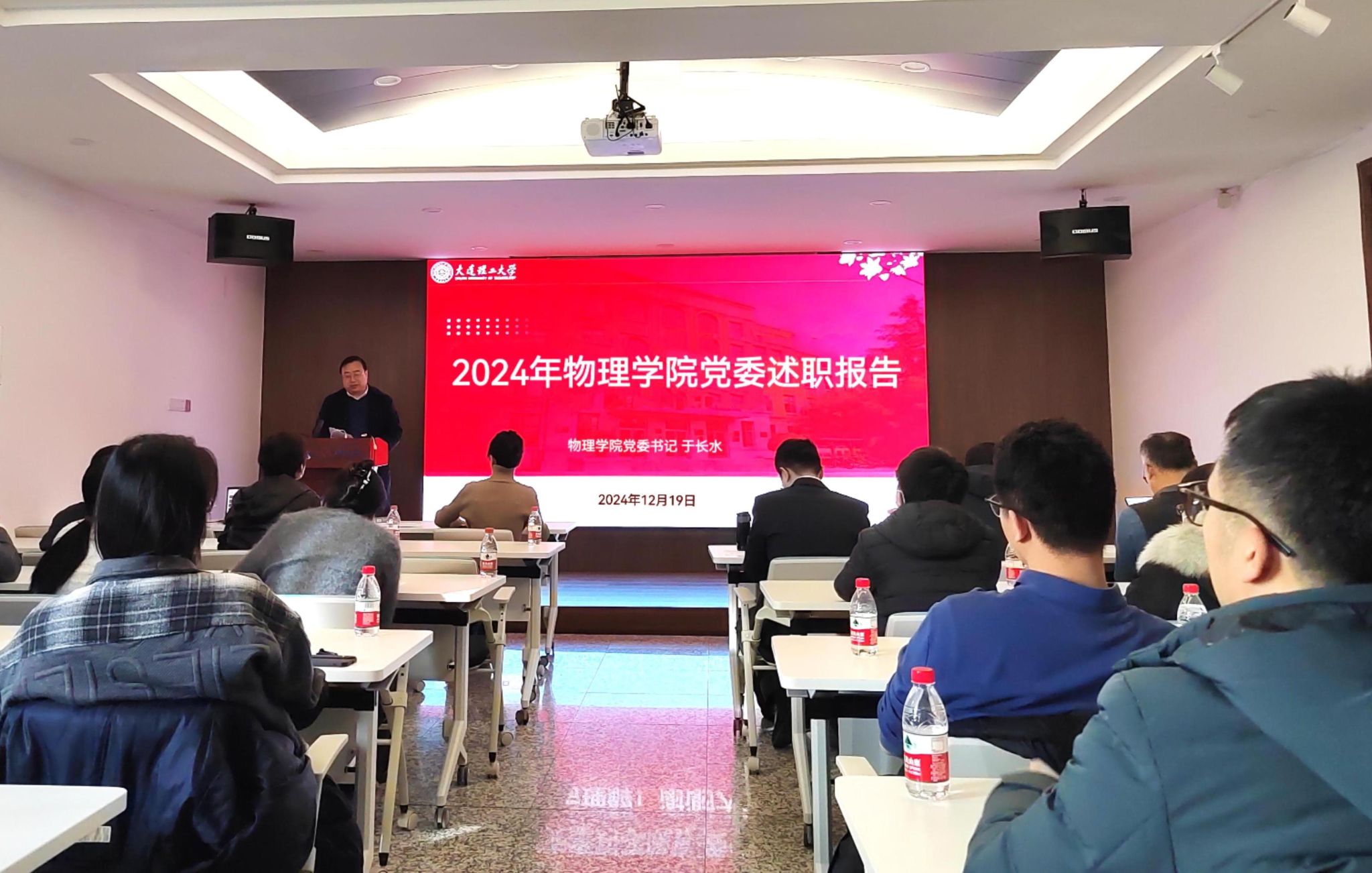 物理学院党委书记于长水、院长王正汹代表学院党政班子作了2024年物理学院党委、行政述职报告,其他领导班子成员均做了书面述职。