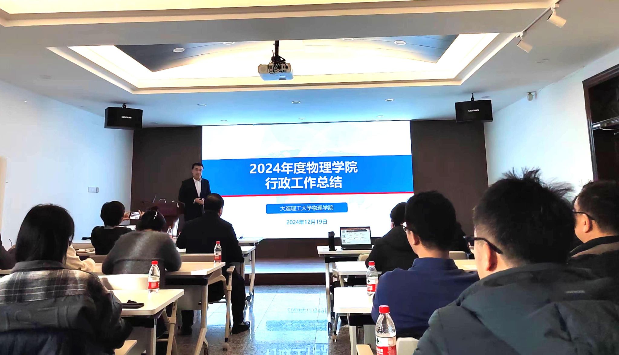 在行政工作汇报中,王正汹院长全面梳理了学院总体发展情况,介绍了2024年物理学院在人才培养、师资队伍建设、科学研究、国际合作与交流、招生和就业等方面的重要业绩。一是优化人才培养机制。进一步深化教育教学改革,加强一流专业建设,推动课程建设和教材建设,改善实验教学条件,提升学生实践能力和创新精神,不断提升拔尖人才培养质量。获国家级竞赛获奖58项,全国挑战杯铜奖、全国挑战杯揭榜挂帅专项赛特等奖。2024年就业率再创新高,本科生100%,研究生98.3%。获省优博1人、省优硕1人。获批省级教改1项、校级教改7项、校级研究生教学成果奖1项。学院获评校本科生工作先进集体,涌现出校优良学风标兵班、进步班,校优秀研究生标兵、先进寝室等优秀集体和个人,其中,10名女生团结协作,携手共进保研的事迹获得光明日报、中青在线等主流媒体报道,火上微博热搜。二是强化师资队伍建设。形成顶层有设计、工作有标准、管理有办法的人才引育工作机制,制定《物理学院全员引才工作机制方案》。引进教授1人,副教授3人,助理教授1人,博士后8人,工程师1人。组织海外宣传招聘会一场,举办两次国际青年学者物理分论坛。获评青年长江1人,国家自然科学基金优秀青年项目1人,海外优青上会1人,博士后引进/派出计划2人,国家资助博士后研究人员计划2人,校优秀青年人才发展培育计划2人。三是实化科学研究成效。科研进款总量达5606.29万元,全年获批各类科研项目67项,其中纵向34项累计合同金额为3419.5万元,横向33项累计合同金额为4065.7万元,成果转化5项。授权中国发明专利共22项,国际(美国)专利1项,实用新型2项。获软件著作权14项。王正汹教授的项目:人工智能助力核聚变能量约束获得第四十九届日内瓦国际发明展金奖。获得辽宁省自然科学一等奖1项、二等奖1项。三束材料改性教育部重点实验室评估获得优秀。四是深化国际交流合作。主办中俄白等离子体会议、承办强子物理及前景国际研讨会等国际会议共4次,获批国家级国际合作项目2项,与ITER国际组织签署校级合作协议2项。新增国际组织任职教师4人,高水平海外学者来院交流2人。五是转化校友基金成果。全年开展校友返校座谈5场,邀请校友讲座2场,接待返校校友323人次,带队赴川金诺、晶泰科技、多点在线等校友企业走访交流合作。学院共3家校友企业入选第三届大工“小巨人”。以人才培养为中心,注重校友基金成果转化,设立多项资助育人项目,年度捐赠额共计200余万元。报告还对下年度行政工作进行了规划。