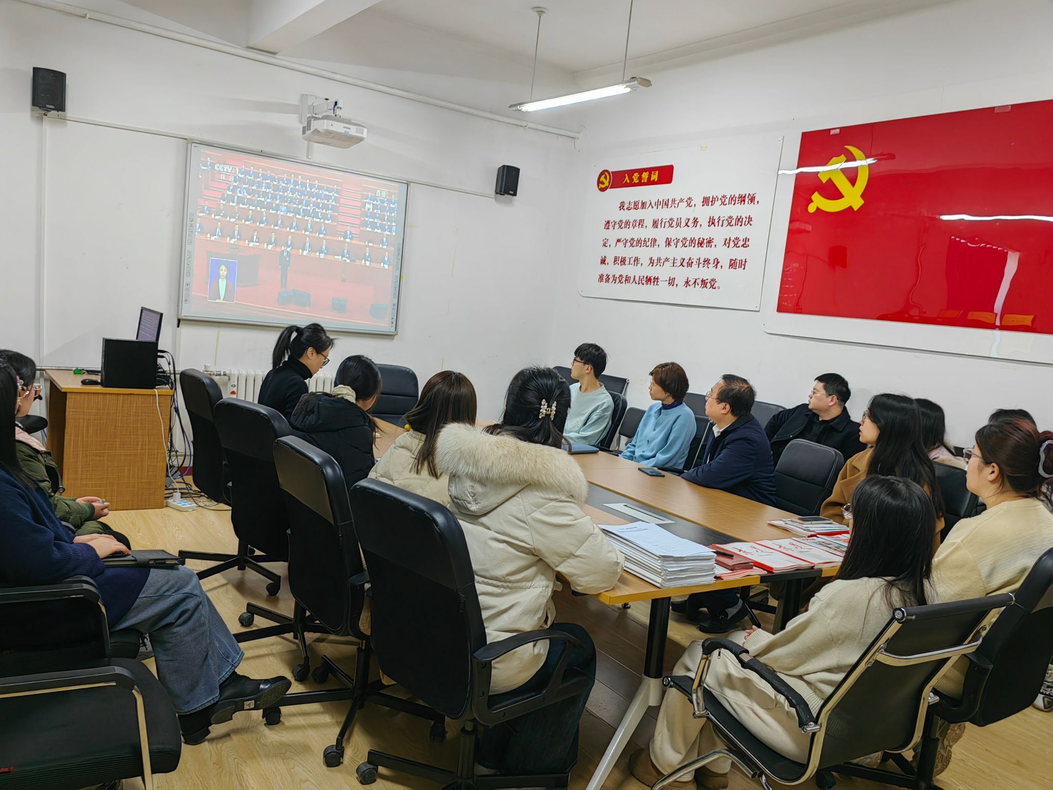 在随后的直播观看中,大家聚精会神,认真聆听政府工作报告。报告对2024年进行工作回顾,提出了2025年经济社会发展总体要求和政策取向。报告中指出,要在以习近平同志为核心的党中央坚强领导下,以习近平新时代中国特色社会主义思想为指导,全面贯彻落实党的二十大和二十届二中、三中全会精神,坚持稳中求进工作总基调,完整准确全面贯彻新发展理念,加快构建新发展格局,扎实推动高质量发展,进一步全面深化改革,扩大高水平对外开放,建设现代化产业体系,更好统筹发展和安全,实施更加积极有为的宏观政策,扩大国内需求,推动科技创新和产业创新融合发展,稳住楼市股市,防范化解重点领域风险和外部冲击,稳定预期、激发活力,推动经济持续回升向好,不断提高人民生活水平,保持社会和谐稳定,高质量完成“十四五”规划目标任务,为实现“十五五”良好开局打牢基础。与会党员同志边听边记,重点标注报告中关于教育、新质生产力、就业统筹推进的战略部署,以及加快建设高质量教育体系和全面提高人才队伍质量等与学院发展密切相关的内容。