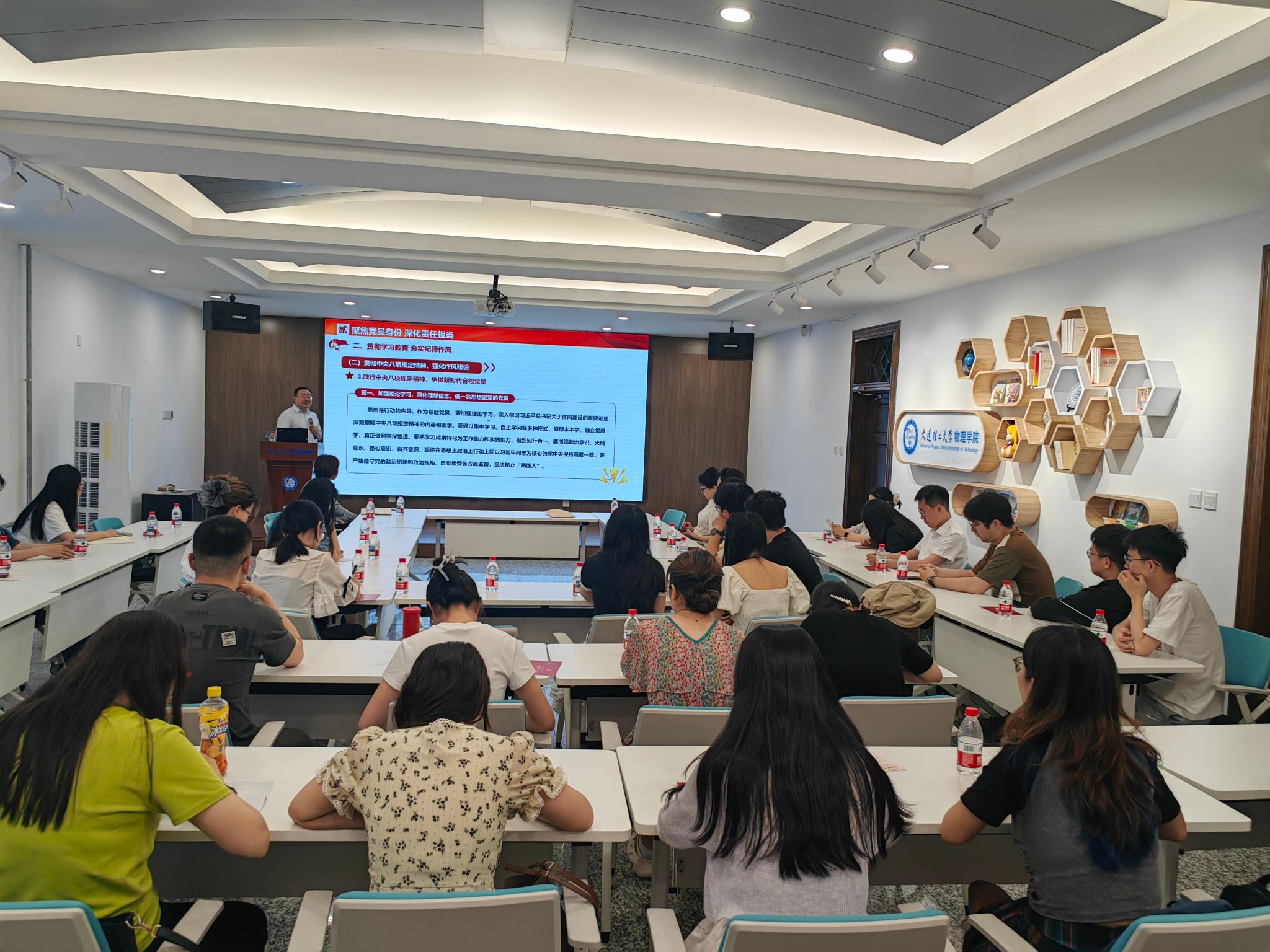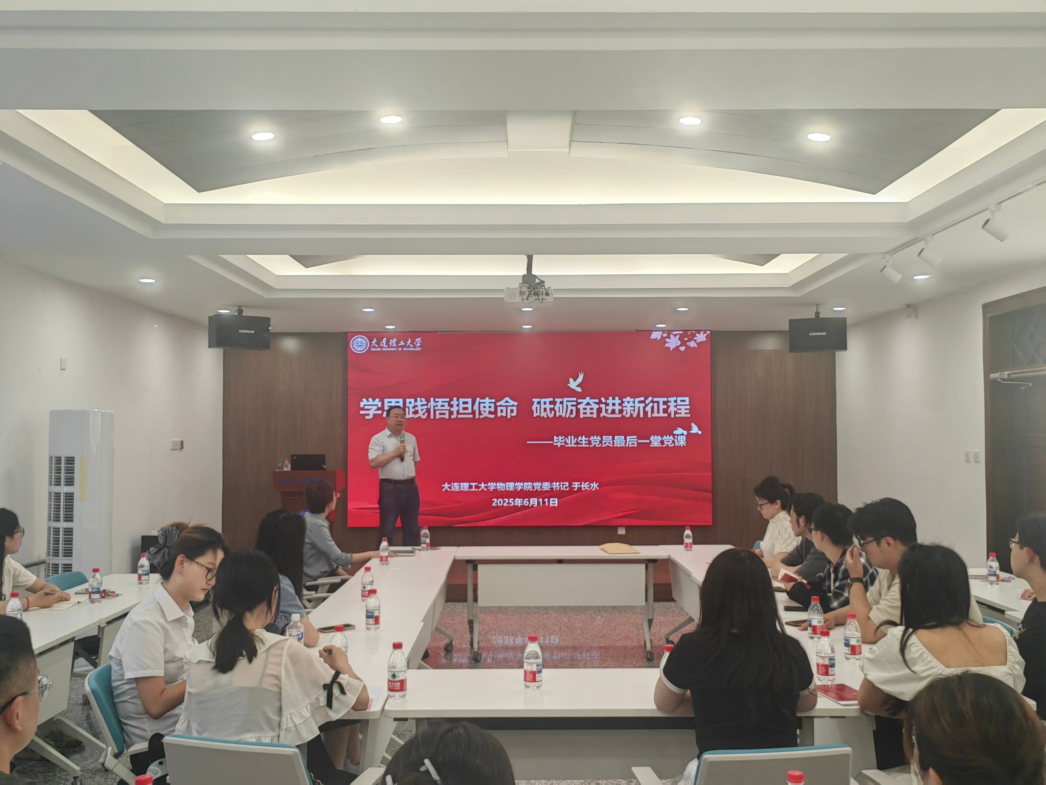 为切实加强毕业生党员教育管理,引导其深学笃行习近平新时代中国特色社会主义思想,坚定理想信念,担当时代使命,物理学院党委于2025年6月11日下午在物理楼322室举办2025届毕业生党员集体政治生日暨“党委书记讲党课”活动。活动由学院党委副书记兼纪委书记于艳敏同志主持,学院党委书记于长水、党委副书记兼副院长周福良、党委组织员纪丹红、学生工作办公室主任张弛及2025届毕业生党员参会。