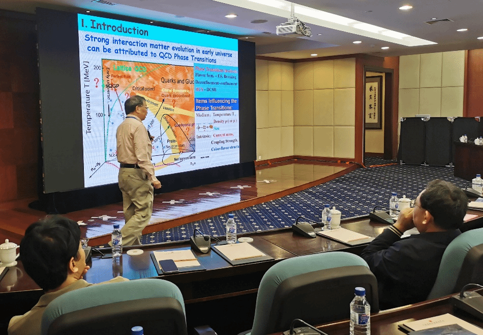 在随后的学术报告环节,华中师范大学许怒教授作题为 “Selected Results from RHIC BES-II” 的报告,系统介绍了RHIC重离子碰撞实验第二阶段(BES-II)的最新成果及其对探索QCD临界点的意义。德国海德堡大学Jan M. Pawlowski教授作报告 “QCD at High Density: Progress and Challenges”,综述了当前QCD高密度区理论研究的最新进展与存在的挑战。北京大学刘玉鑫教授以“QCD Phase Diagram in View of General Principle”为题系统地讨论了从第一性原理出发对QCD相图相结构的理解。东京大学Kenji Fukushima教授则以“Emergent conformality in dense QCD matter: some lessons from a holographic QCD model”为题从全息的视角考察了高密度区域QCD相图的结构。