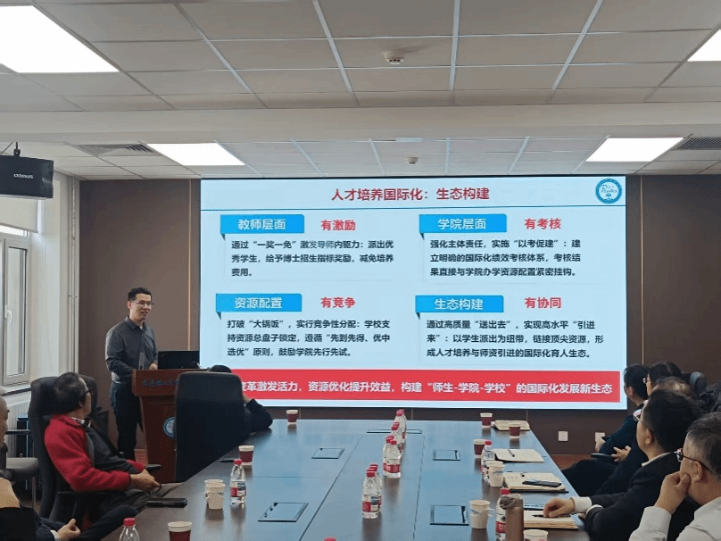 副院长桑超峰围绕学院“十五五”科研与国际化规划作专题汇报。他提出将以科研团队为单位,统筹推进有组织科研,锚定国家重点支持方向,重点布局等离子体物理、量子科技和新能源材料等研究方向,依托“等离子体物理”国家重点学科,推动国际级平台的建立。着力构建国际化人才培养生态,通过机制变革激发内生活力,打造“师生-学院-学校”的国际化发展新态势。