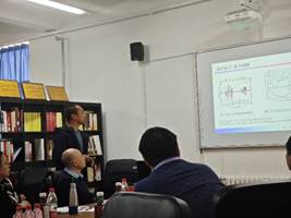 随后,原子与分子物理学科教师韩永昌教授、程传辉副教授、王高仁副教授与黄嘉宇副教授,以及博士生刘鸿儒分别就课题组的研究方向、研究内容以及研究计划做了相应的报告。报告中,吴勇研究员耐心倾听,给出了中肯的建议和指导。