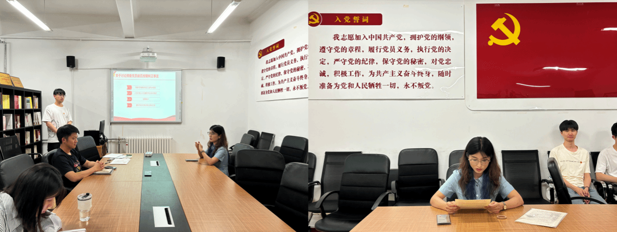 为推动深入贯彻中央八项规定精神学习教育走深走实,切实提升党员的政治素养和理论水平,增强党支部的凝聚力,物理学院硕博等离子体第三学生党支部于2025年5月29日在物理楼422室开展主题党日活动暨深入贯彻中央八项规定精神学习教育主题党课。会议内容主要包括讨论和表决预备党员的转正问题以及学习专题党课。会议由党支部书记高子豪同志主持,党支部全体党员参会。