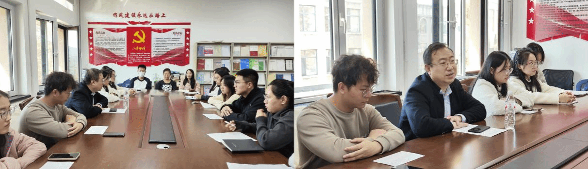 会议第一项,由党委书记于长水教授领学党的二十届四中全会精神。于长水教授围绕“十五五”时期指导思想、“六个坚持”原则、七大主要目标及十二项战略任务等核心内容展开深入阐释,系统梳理了未来五年国家发展的行动纲领与实践路径。于长水教授强调,学习贯彻党的二十届四中全会精神是当前和今后一个时期的重要政治任务。一是要深学细悟,党支部需切实扛起政治责任,通过专题学习、研讨交流等多样形式组织党员深入学习;二是要精准发力,坚持读原著、学原文、悟原理,全面准确领会精神实质,杜绝一知半解、浅尝辄止;三是要广泛宣传,依托党支部公众号、学习群等平台开展全方位宣传,营造浓厚学习氛围;四是要求真务实,注重学习成果转化,将全会精神与党支部建设、学习科研紧密结合,切实履行好“一岗双责”。