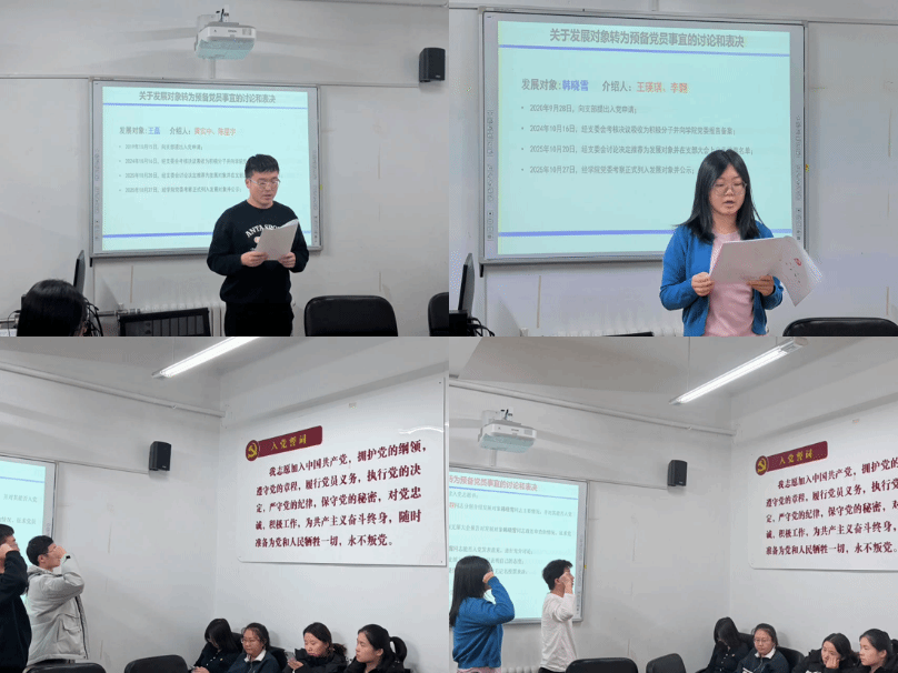 为深入学习贯彻党的二十届四中全会精神,加强党员队伍建设,为党支部注入新生力量,物理学院硕博等离子体第二学生党支部于2025年11月17日下午4:30在物理学院422会议室召开党员大会,会议集中学习“十五五”规划纲要精神,并严格按照组织程序,讨论并表决通过了接收王磊、韩晓雪两名同志为中共预备党员的事宜。会议由党支部书记王瑛琪同志主持,党支部全体党员参加。