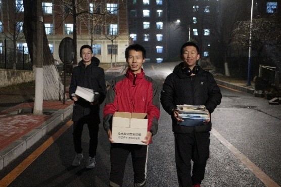 12月5日、6日两天晚上,志愿者们前往2017、2018、2019级学生宿舍开展活动。活动中,志愿者和主动参与捐赠的同学们一同整理、搬运书籍和旧衣物。囤积旧物挤占寝室的空间,影响同学们干净整洁的生活环境,卖掉旧物不值钱,扔掉又可惜。而在此次活动期间,同学们积极整理寝室,挪去旧物而腾下空间,送与书籍而传承无私精神。寝室一点一点地变干净整洁,温情一脉一脉地传递。人能行其善,物能尽其用,同时屋室又能得以清扫。在收集整理完旧物之后,志愿者将收集到的物品搬运至指定地点进行清点。即使时值大冬,搬运路上寒风刺骨,但志愿者们热情丝毫不减,依旧不辞辛劳地忙前忙后,都在努力做好自己的工作,为共建整洁的寝室卫生环境而努力。
