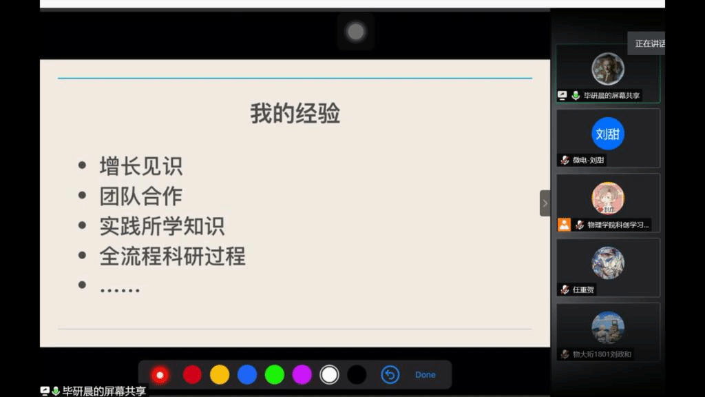 本次说明会邀请到往届参加过学术竞赛并取得优异成绩的队员物大珩1801刘政和、物大珩1801毕研晨、物大珩1801李世济作为到场嘉宾。他们为参赛选手介绍比赛赛制,以及分享他们的比赛经验和心得体会。宣讲内容干货满满,参赛选手们对学术竞赛形成更加全面的认识。