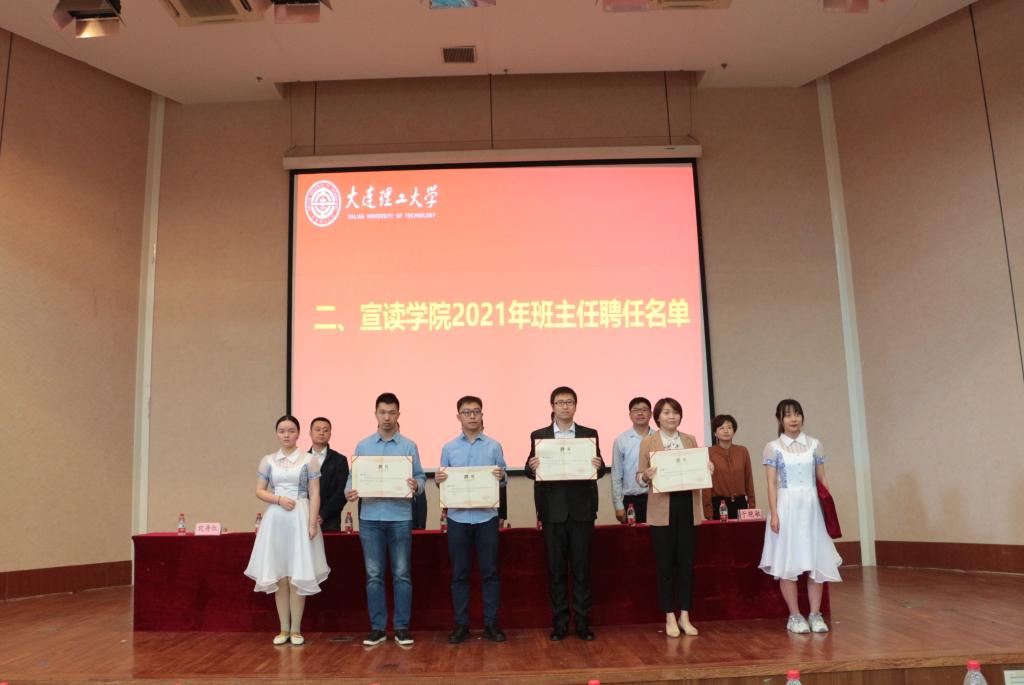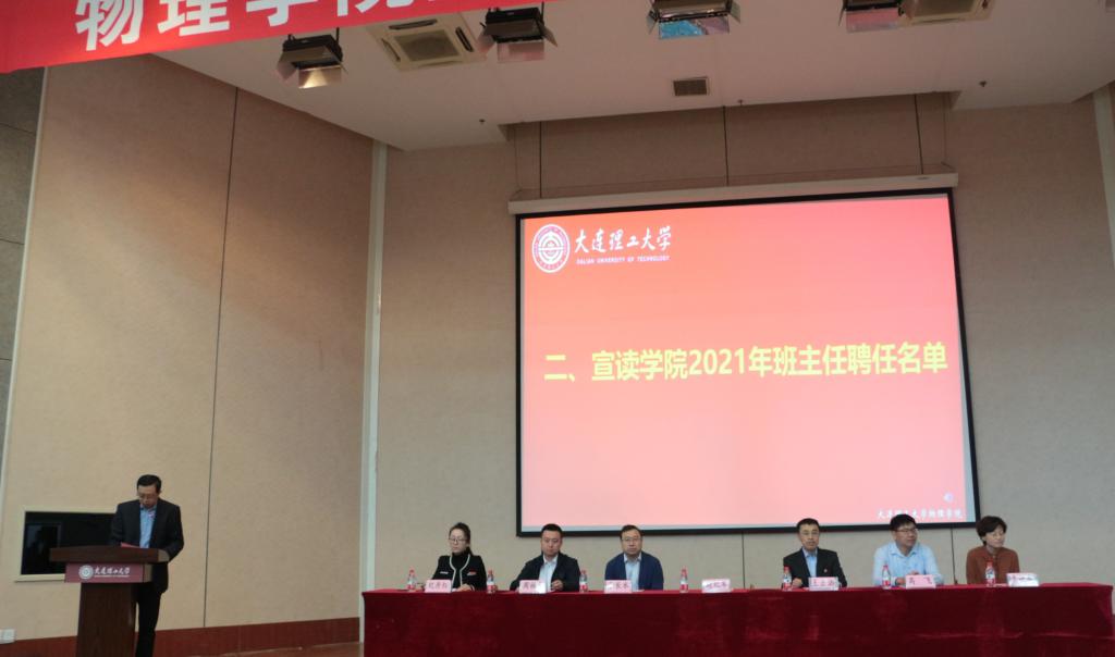 大会第一项全体起立奏唱国歌,随着国歌奏起,师生们庄严合唱。大会第二项院长赵纪军教授宣读物理学院2021年班主任聘任名单,学院领导为所有新聘任专业班主任、思政班主任颁发聘书,班主任们担任起步新生们的专业指导、思想政治引领的重任。