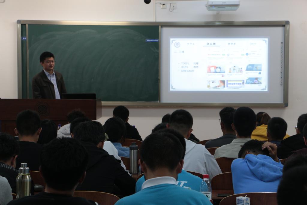 毕研晨同学以自己出国学习的经验为基础,从“为什么要出国”“出国的准备”两方面给出自己的建议,并且分享自己出国学习时的照片,带领同学们了解申请出国留学的一些必要准备。