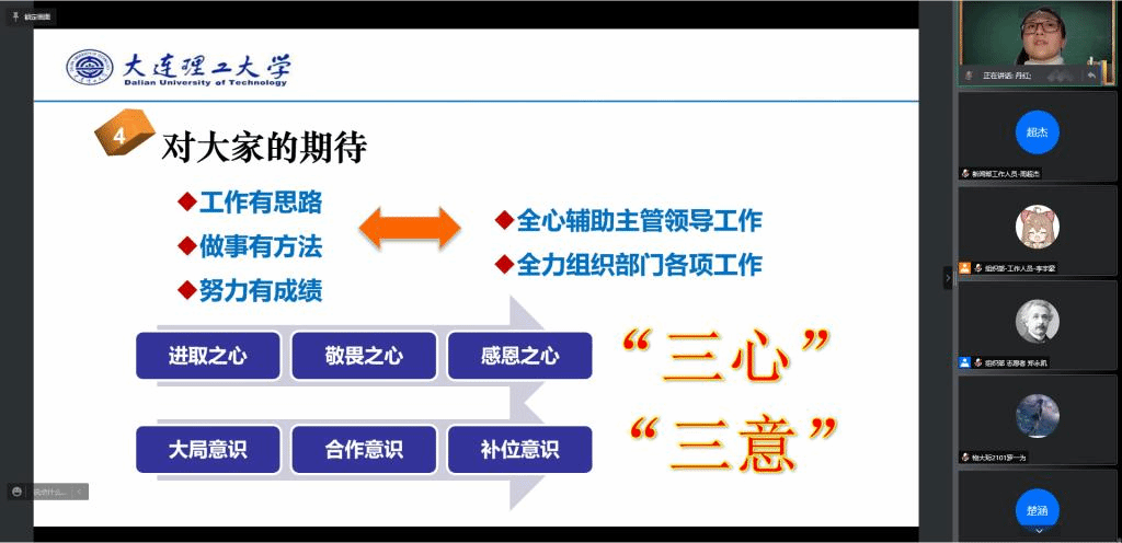2021年11月28日晚,物理学院三级团校培训采用线上形式顺利召开。参加本次会议的有物理学院团委书记、20级队辅导员纪丹红老师,物理学院团委副书记、21级队辅导员陈万年老师,校学生会熊天成同学,校团委朴舒梵同学、汪不凡同学,理论学习中心的吴海欣同学及物理学院团学所有成员。