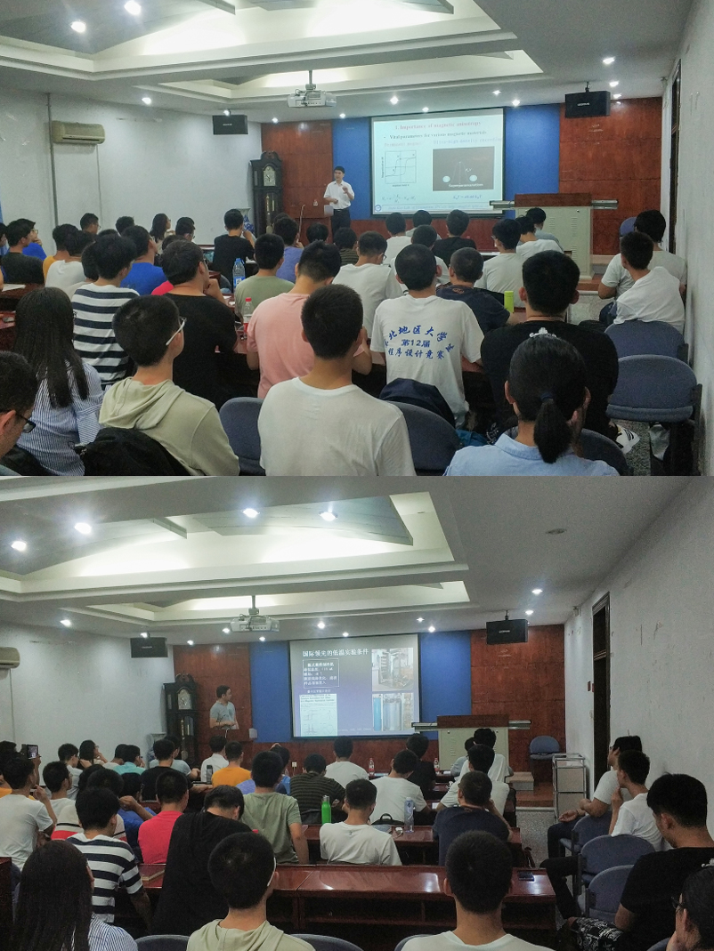 9月12日晚,物理学院322会议室开展“科学家面对面”专题学术报告活动,中科院物理所成昭华、程智刚两名研究员先后做专题学术报告。其中国家杰出青年基金获得者,中科院百人计划入选者成昭华研究员做《磁性纳米结构与飞秒磁性》专题报告、中科院百人计划特聘研究员程智刚做《量子计算与拓扑超导体》专题报告,讲座现场座无虚席,听会学生反响热烈。报告环节结束后,物理所研究生部科教结合业务主管汪庭语老师就“严济慈班”招生详情进行宣讲。