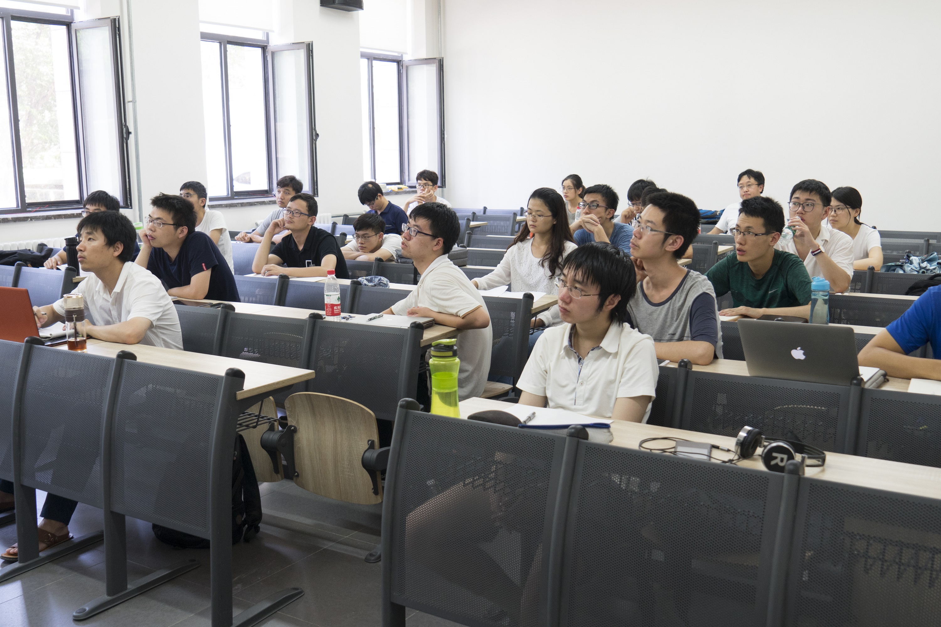 在这两天的过程中,Pawlowiski教授讲解的夸克胶子等离子体及其相关理论正是当今理论物理研究领域的前沿课题内容。本次系列报告的主题是以泛函重整化群为基础的强相关QCD中物理和QCD相结构。Pawlowiski教授介绍QCD相图和其中包含的物理以及非微扰QCD计算中的泛函方法和连续性方法,着重讲解泛函重整化群方法,带着在场同学了解有限温情况下杨-米尔斯理论和相关结构并学习高能重离子碰撞中的动力学知识。现场同学也都对此方向有着高涨的学习热情。面对没有理解的理论知识,他们更是虚心请教,主动与Pawlowiski教授在黑板上讨论。这种激烈的学术交流氛围是本次系列讲座中不少见的一道风景线,体现着学子们求知若渴的学习精神。